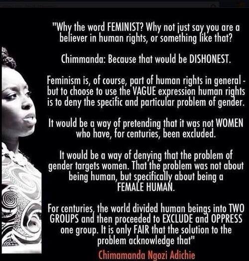 This quote from Chimamanda Ngozi Adichie is brilliant and powerful: